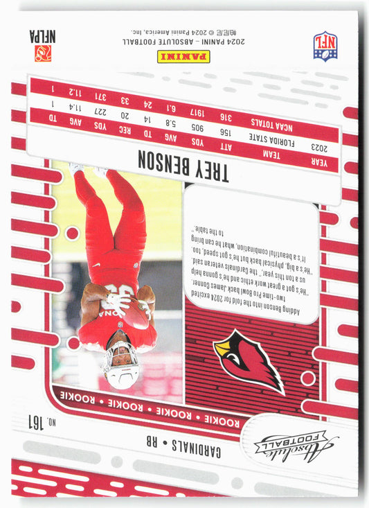 This is a nice example of a 2024 Panini Absolute #161 Trey Benson Other important information about this card:RCIn 2024 Trey Benson played for the Arizona Cardinals.Please check out our...