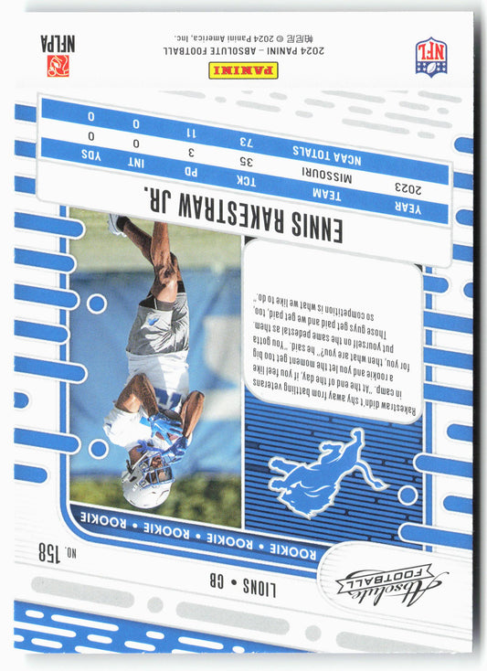 This is a nice example of a 2024 Panini Absolute #158 Ennis Rakestraw Jr. Other important information about this card:RCIn 2024 Ennis Rakestraw Jr. played for the Detroit Lions.Please check...