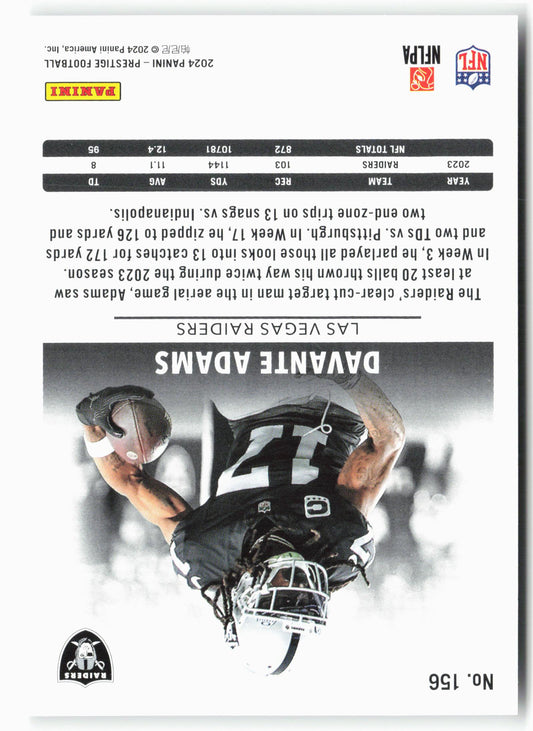 This is a nice example of a 2024 Panini Prestige #156 Davante Adams Other important information about this card:In 2024 Davante Adams played for the Las Vegas Raiders.Please check out...