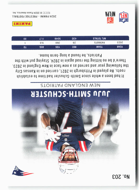 This is a nice example of a 2024 Panini Prestige #203 JuJu Smith-Schuster Other important information about this card:In 2024 JuJu Smith-Schuster played for the New England Patriots.Please check out...