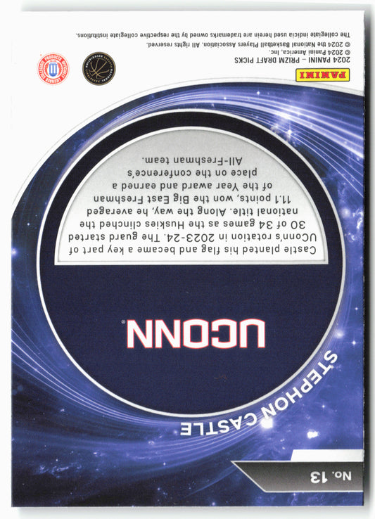 This is a nice example of a 2024 Panini Prizm Draft Picks #13 Stephon Castle Student Orientation Other important information about this card:In 2024 Stephon Castle played for the Connecticut...