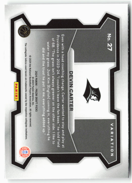 This is a nice example of a 2024 Panini Prizm Draft Picks #27 Devin Carter Other important information about this card:In 2024 Devin Carter played for the Providence Friars.Please check...