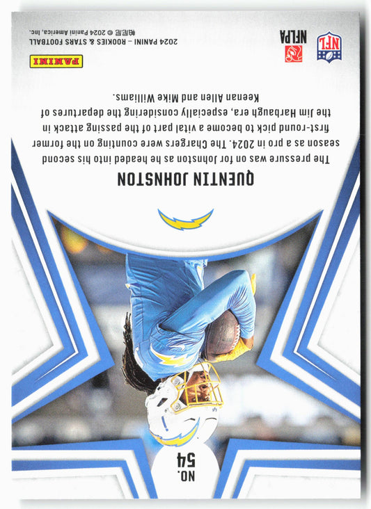This is a nice example of a 2024 Panini Rookies & Stars #54 Quentin Johnston Other important information about this card:In 2024 Quentin Johnston played for the Los Angeles Chargers.Please...