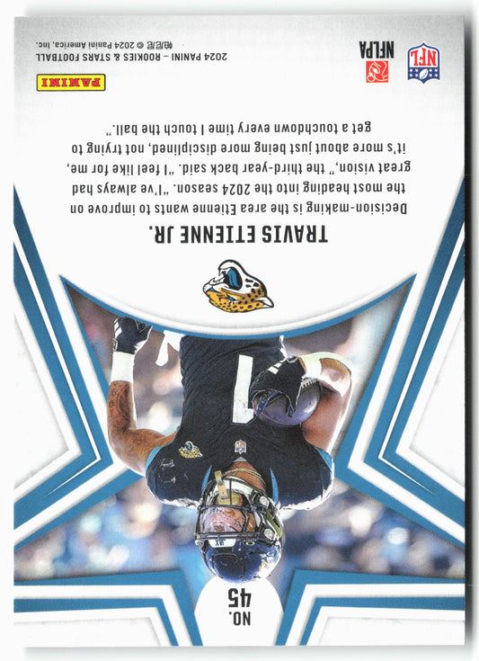 This is a nice example of a 2024 Panini Rookies & Stars #45 Travis Etienne Jr. Other important information about this card:In 2024 Travis Etienne Jr. played for the Jacksonville...