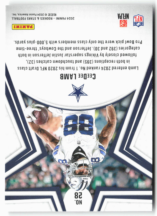 This is a nice example of a 2024 Panini Rookies & Stars #28 CeeDee Lamb Other important information about this card:In 2024 CeeDee Lamb played for the Dallas Cowboys.Please check...