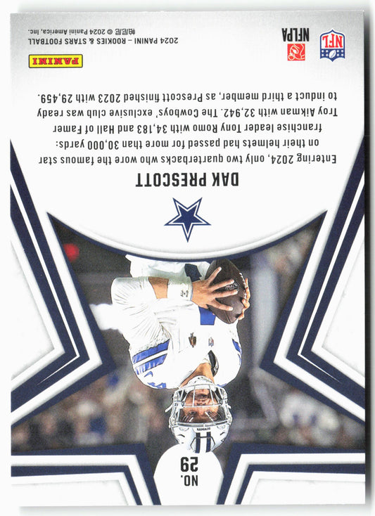 This is a nice example of a 2024 Panini Rookies & Stars #29 Dak Prescott Other important information about this card:In 2024 Dak Prescott played for the Dallas Cowboys.Please check...