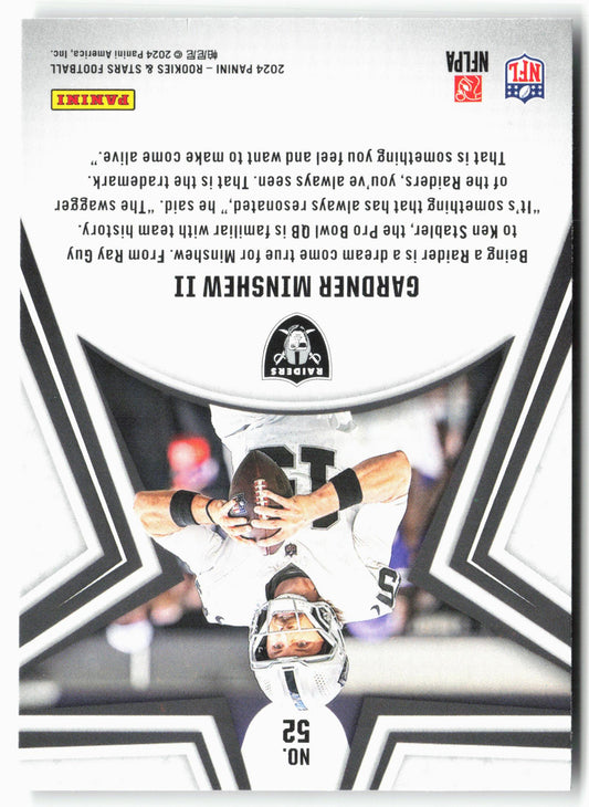 This is a nice example of a 2024 Panini Rookies & Stars #52 Gardner Minshew II Other important information about this card:In 2024 Gardner Minshew II played for the Las...
