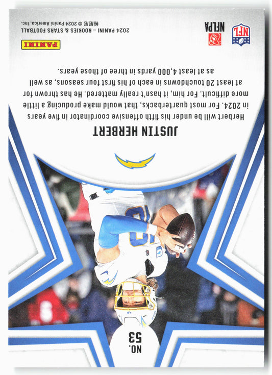 This is a nice example of a 2024 Panini Rookies & Stars #53 Justin Herbert Other important information about this card:In 2024 Justin Herbert played for the Los Angeles Chargers.Please...