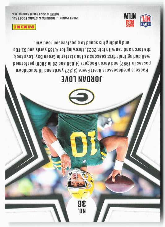 This is a nice example of a 2024 Panini Rookies & Stars #36 Jordan Love Other important information about this card:In 2024 Jordan Love played for the Green Bay Packers.Please...