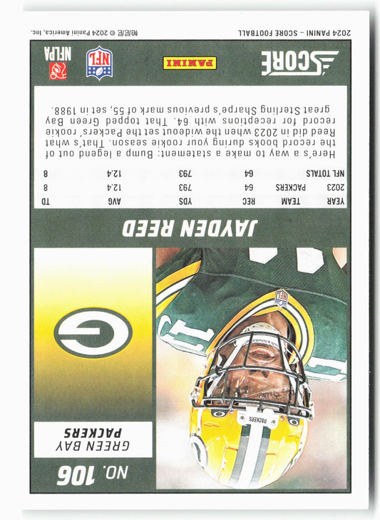 This is a nice example of a 2024 Score #106 Jayden Reed Other important information about this card:In 2024 Jayden Reed played for the Green Bay Packers.Please check out our...