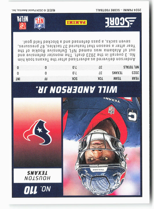This is a nice example of a 2024 Score #110 Will Anderson Jr. Other important information about this card:In 2024 Will Anderson Jr. played for the Houston Texans.Please check out...