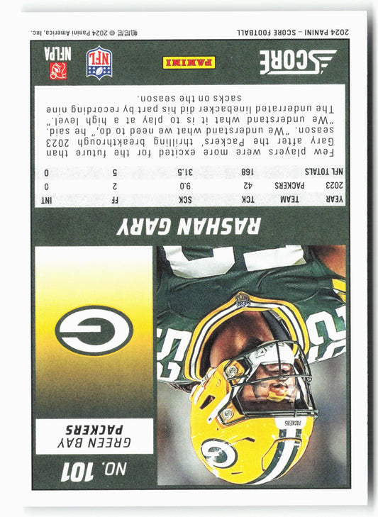 This is a nice example of a 2024 Score #101 Rashan Gary Other important information about this card:In 2024 Rashan Gary played for the Green Bay Packers.Please check out our...