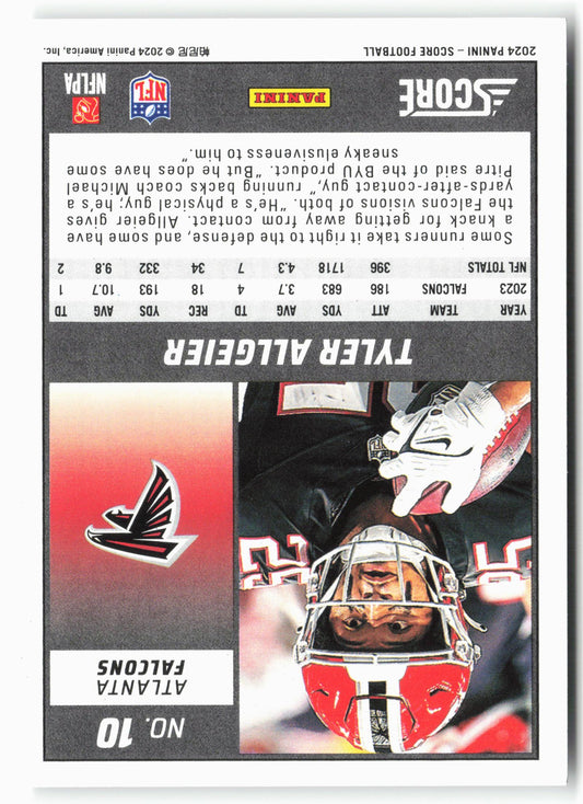 This is a nice example of a 2024 Score #10 Tyler Allgeier Other important information about this card:In 2024 Tyler Allgeier played for the Atlanta Falcons.Please check out our other...