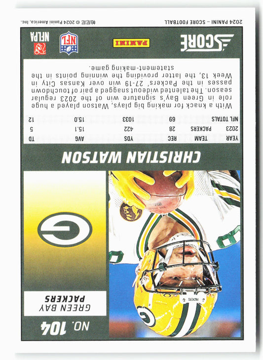 This is a nice example of a 2024 Score #104 Christian Watson Other important information about this card:In 2024 Christian Watson played for the Green Bay Packers.Please check out our...