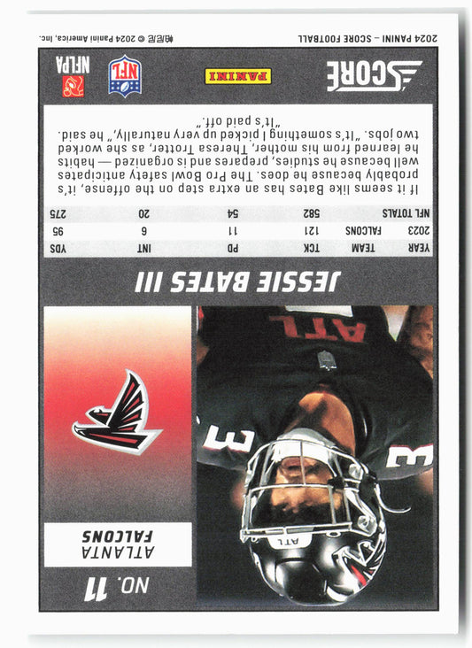 This is a nice example of a 2024 Score #11 Jessie Bates III Other important information about this card:In 2024 Jessie Bates III played for the Atlanta Falcons.Please check out...