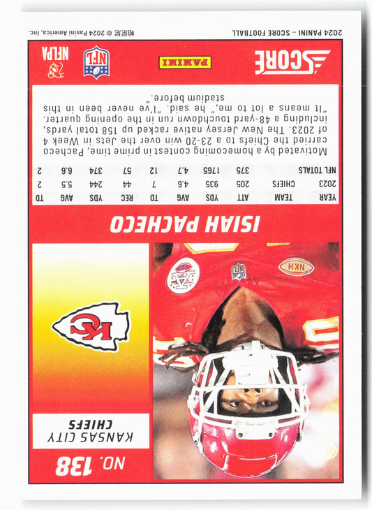 This is a nice example of a 2024 Score #138 Isiah Pacheco Other important information about this card:In 2024 Isiah Pacheco played for the Kansas City Chiefs.Please check out our...