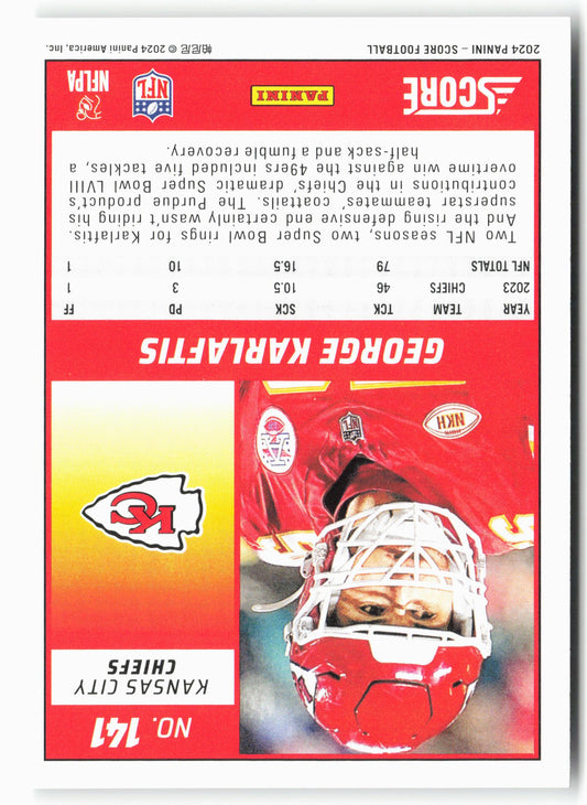 This is a nice example of a 2024 Score #141 George Karlaftis Other important information about this card:In 2024 George Karlaftis played for the Kansas City Chiefs.Please check out our...