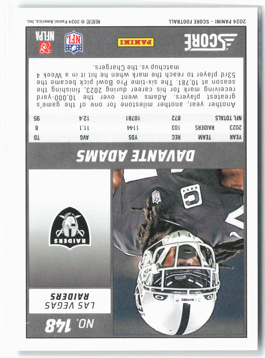 This is a nice example of a 2024 Score #148 Davante Adams Scorecard Other important information about this card:In 2024 Davante Adams played for the Las Vegas Raiders.Please check out...