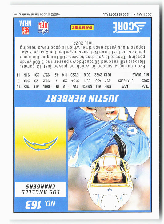 This is a nice example of a 2024 Score #163 Justin Herbert Other important information about this card:In 2024 Justin Herbert played for the Los Angeles Chargers.Please check out our...
