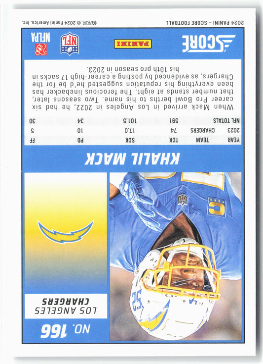 This is a nice example of a 2024 Score #166 Khalil Mack Scorecard Other important information about this card:In 2024 Khalil Mack played for the Los Angeles Chargers.Please check out...