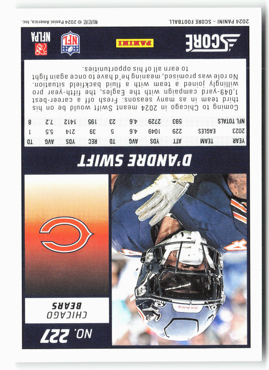 This is a nice example of a 2024 Score #227 D'Andre Swift Other important information about this card:In 2024 D'Andre Swift played for the Chicago Bears.Please check out our other...