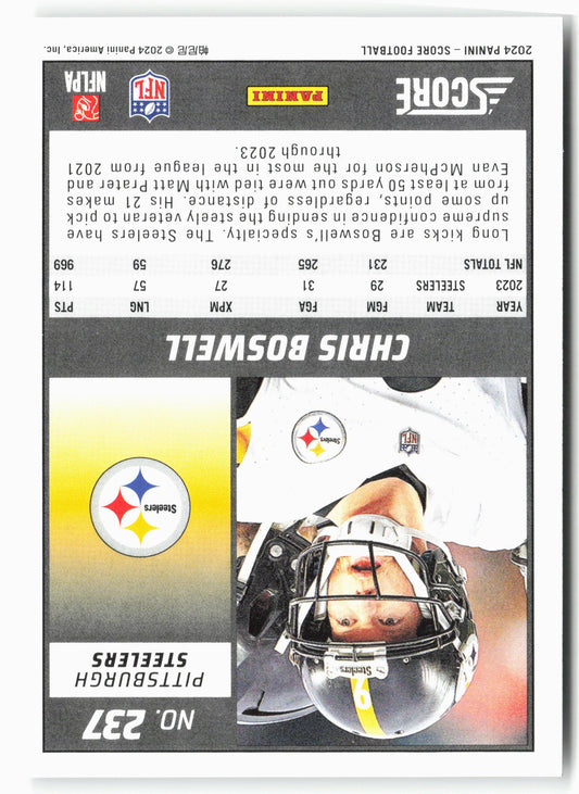 This is a nice example of a 2024 Score #237 Chris Boswell Other important information about this card:In 2024 Chris Boswell played for the Pittsburgh Steelers.Please check out our other...