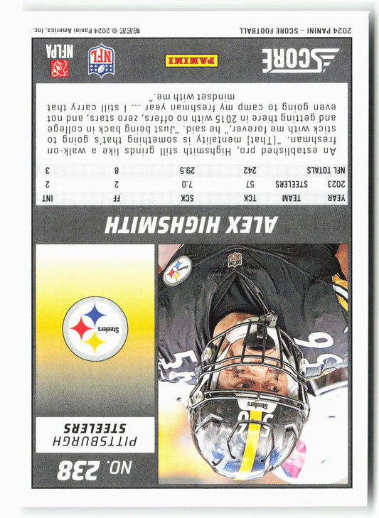 This is a nice example of a 2024 Score #238 Alex Highsmith Other important information about this card:In 2024 Alex Highsmith played for the Pittsburgh Steelers.Please check out our other...