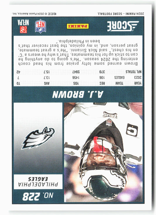 This is a nice example of a 2024 Score #228 A.J. Brown Other important information about this card:In 2024 A.J. Brown played for the Philadelphia Eagles.Please check out our other...