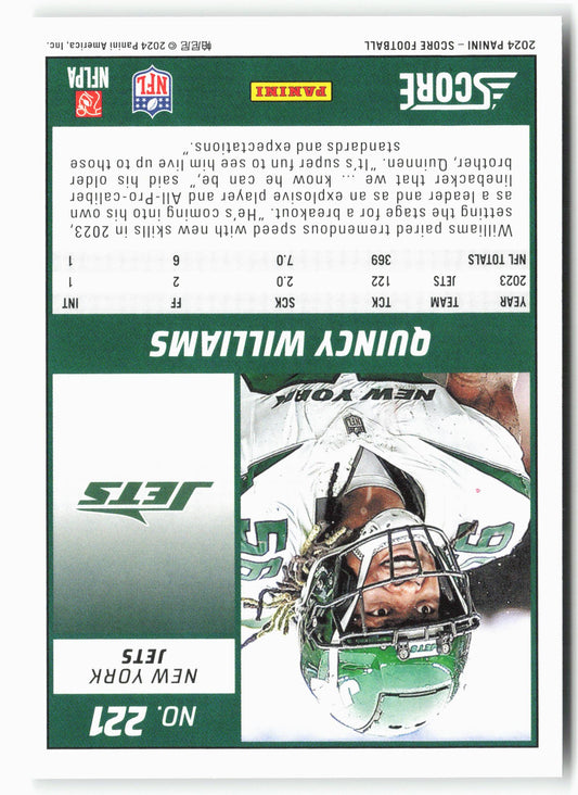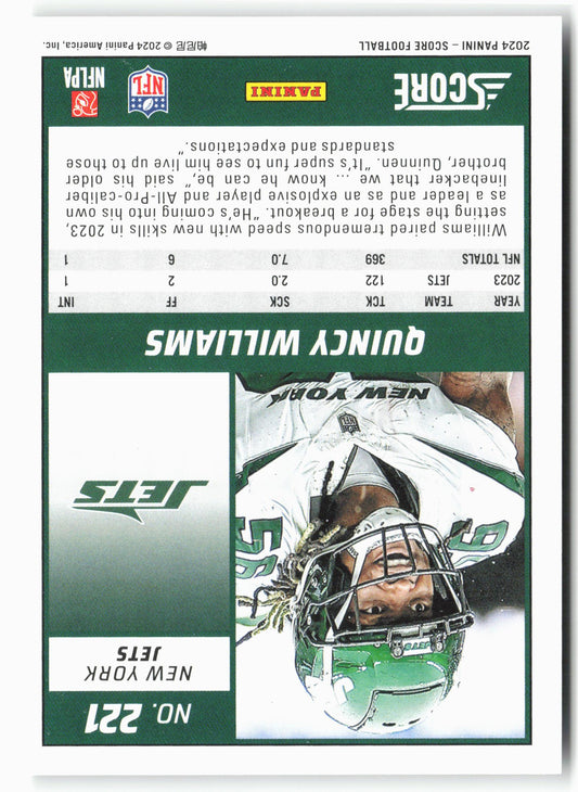 This is a nice example of a 2024 Score #221 Quincy Williams Scorecard Other important information about this card:In 2024 Quincy Williams played for the New York Jets.Please check out...