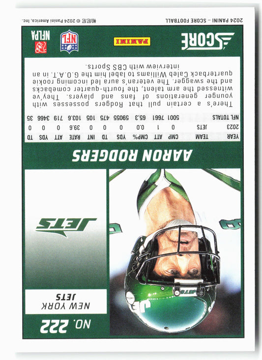This is a nice example of a 2024 Score #222 Aaron Rodgers Other important information about this card:In 2024 Aaron Rodgers played for the New York Jets.Please check out our...