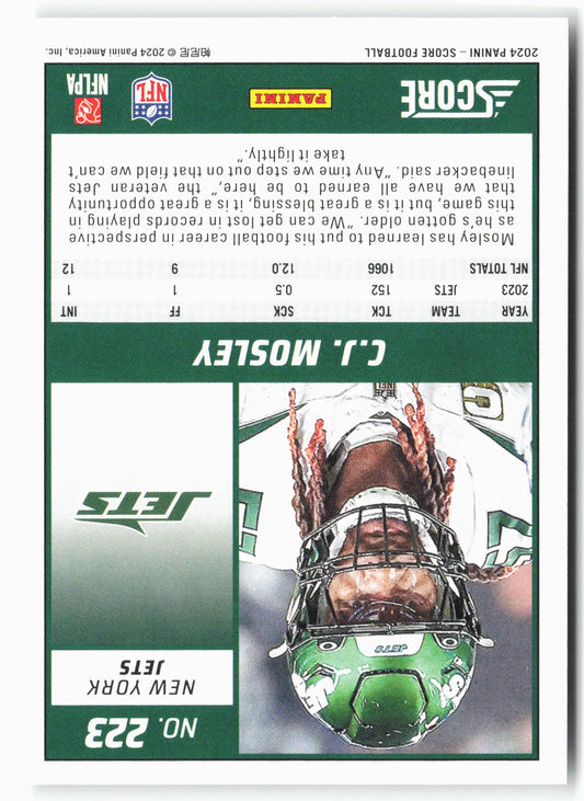 This is a nice example of a 2024 Score #223 C.J. Mosley Other important information about this card:In 2024 C.J. Mosley played for the New York Jets.Please check out our...