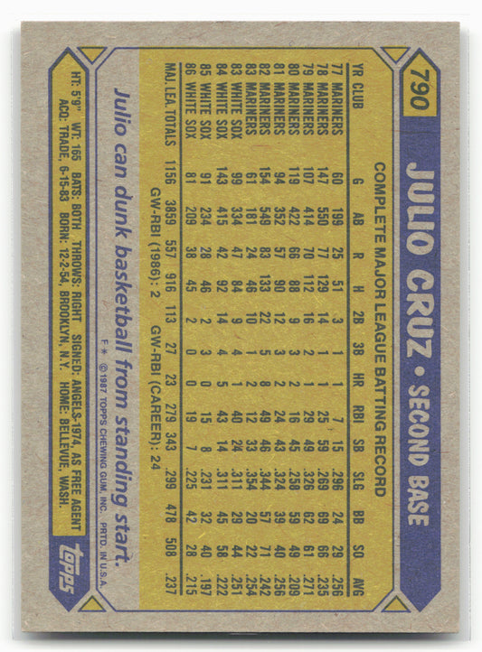 This is a nice example of a 1987 Topps #790 Julio Cruz Other important information about this card:In 1987 Julio Cruz played for the Chicago White Sox.Please check out our...