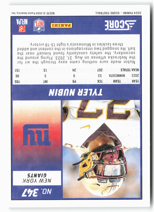 This is a nice example of a 2024 Score #347 Tyler Nubin Other important information about this card:RCIn 2024 Tyler Nubin played for the New York Giants.Please check out our...