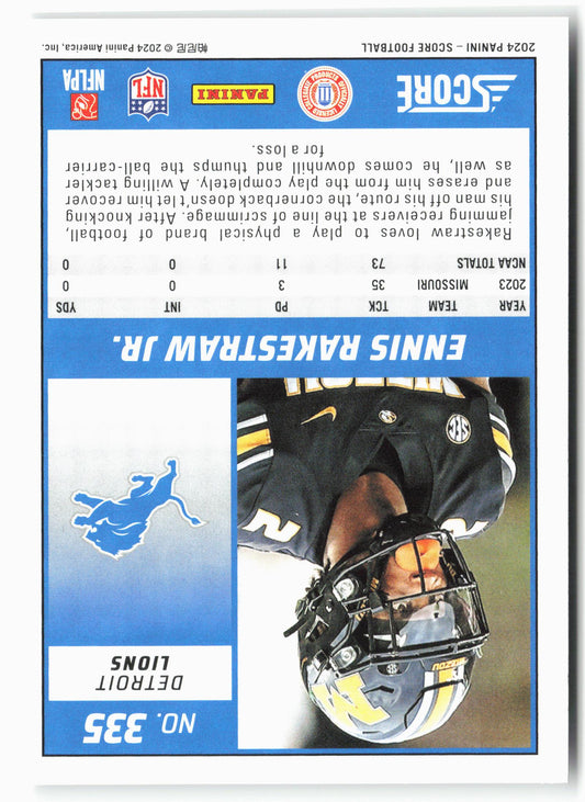 This is a nice example of a 2024 Score #335 Ennis Rakestraw Other important information about this card:RCIn 2024 Ennis Rakestraw played for the Detroit Lions.Please check out our other...