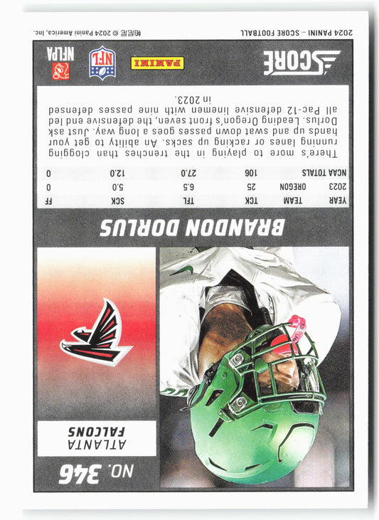 This is a nice example of a 2024 Score #346 Brandon Dorlus Other important information about this card:RCIn 2024 Brandon Dorlus played for the Atlanta Falcons.Please check out our other...