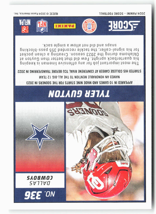 This is a nice example of a 2024 Score #336 Tyler Guyton Other important information about this card:RCIn 2024 Tyler Guyton played for the Dallas Cowboys.Please check out our other...