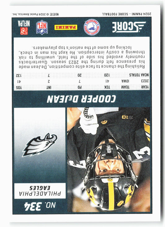This is a nice example of a 2024 Score #334 Cooper DeJean Other important information about this card:RCIn 2024 Cooper DeJean played for the Philadelphia Eagles.Please check out our other...
