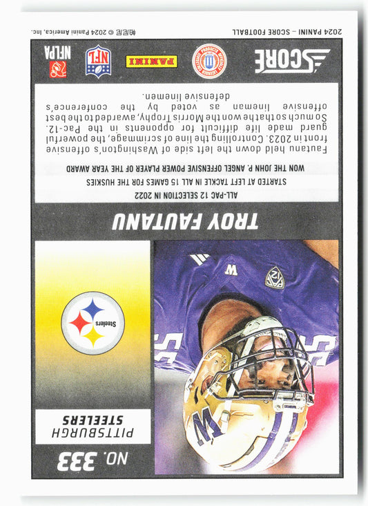 This is a nice example of a 2024 Score #333 Troy Fautanu Other important information about this card:RCIn 2024 Troy Fautanu played for the Pittsburgh Steelers.Please check out our other...