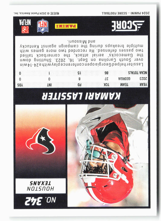 This is a nice example of a 2024 Score #342 Kamari Lassiter Other important information about this card:RCIn 2024 Kamari Lassiter played for the Houston Texans.Please check out our other...