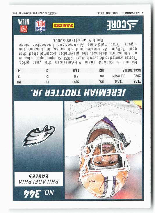 This is a nice example of a 2024 Score #344 Jeremiah Trotter Jr. Other important information about this card:RCIn 2024 Jeremiah Trotter Jr. played for the Philadelphia Eagles.Please check out...