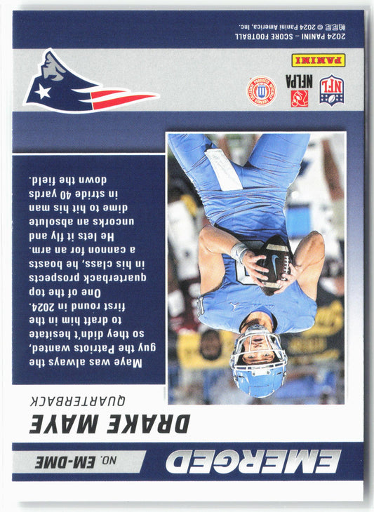This is a nice example of a 2024 Score #EM-DME Drake Maye Emerged Other important information about this card:In 2024 Drake Maye played for the New England Patriots.Please check out...