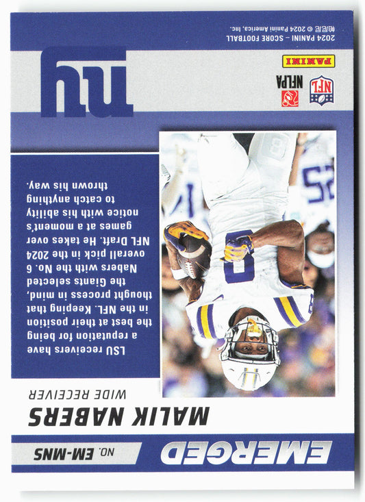 This is a nice example of a 2024 Score #EM-MNS Malik Nabers Emerged Other important information about this card:In 2024 Malik Nabers played for the New York Giants.Please check out...