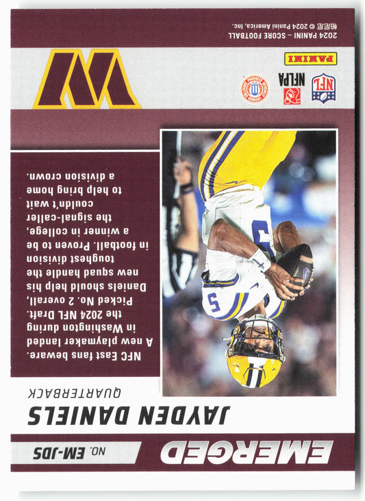 This is a nice example of a 2024 Score #EM-JDS Jayden Daniels Emerged Other important information about this card:In 2024 Jayden Daniels played for the Washington Commanders.Please check out our...