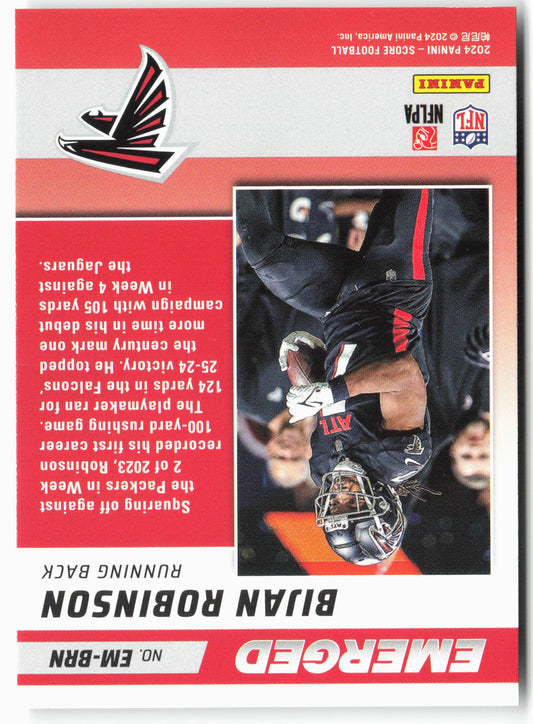 This is a nice example of a 2024 Score #EM-BRN Bijan Robinson Emerged Other important information about this card:In 2024 Bijan Robinson played for the Atlanta Falcons.Please check out our...