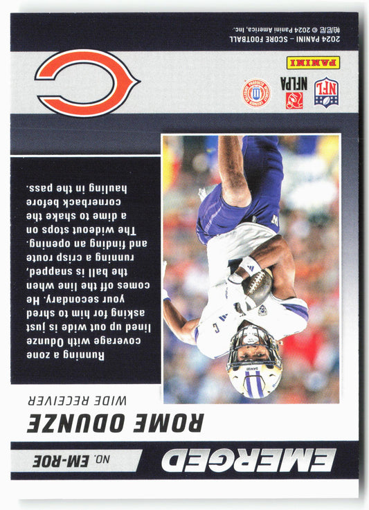 This is a nice example of a 2024 Score #EM-RDE Rome Odunze Emerged Other important information about this card:In 2024 Rome Odunze played for the Chicago Bears.Please check out our...