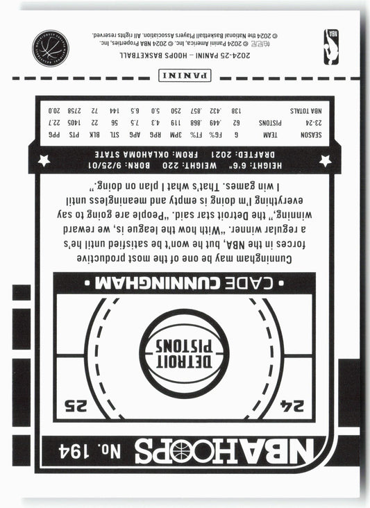 This is a nice example of a 2024-25 Hoops #194 Cade Cunningham Other important information about this card:In 2024 Cade Cunningham played for the Detroit Pistons.Please check out our other...