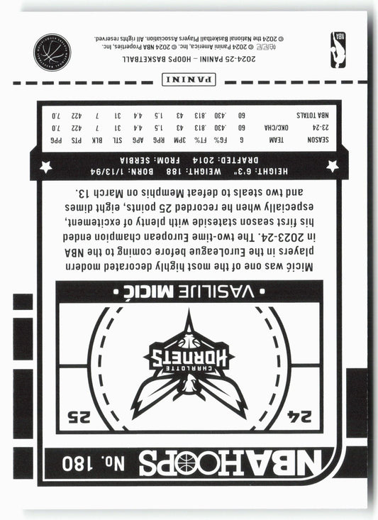 This is a nice example of a 2024-25 Hoops #180 Vasilije Micic Other important information about this card:In 2024 Vasilije Micic played for the Charlotte Hornets.Please check out our other...