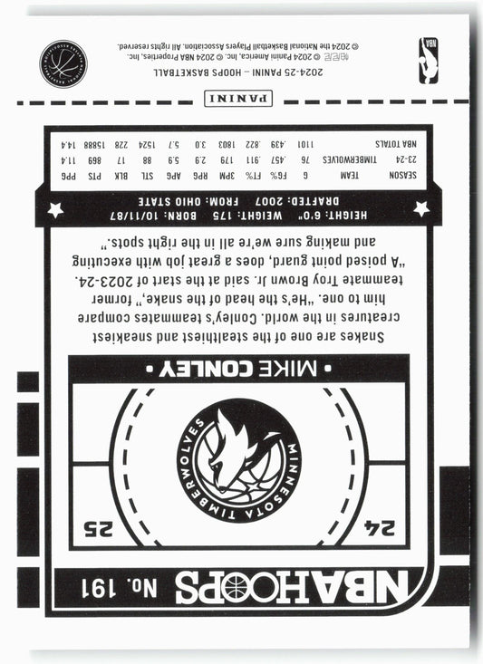 This is a nice example of a 2024-25 Hoops #191 Mike Conley Other important information about this card:In 2024 Mike Conley played for the Minnesota Timberwolves.Please check out our other...