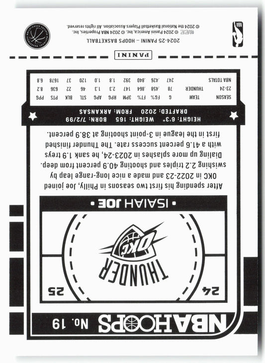 This is a nice example of a 2024-25 Hoops #19 Isaiah Joe Other important information about this card:In 2024 Isaiah Joe played for the Oklahoma City Thunder.Please check out our...