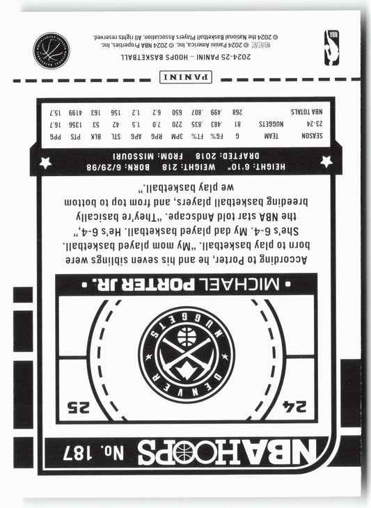 This is a nice example of a 2024-25 Hoops #187 Michael Porter Jr. Other important information about this card:In 2024 Michael Porter Jr. played for the Denver Nuggets.Please check out...